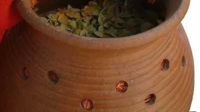 3 macetas de barro (olla A, B y C) y perfore los agujeros (diámetro de 1 pulgada) en los lados. Estas se utilizarán para la circulación de aire.   También hacer grandes agujeros (diámetro de 3 pulgadas) en la base de 2 de las ollas (Pot A y B). Estos agujeros se utilizará para drenar leechate. Asegúrese de que dejar la tercera maceta sin agujero en la parte inferior. Este bote será la parte inferior más pote.