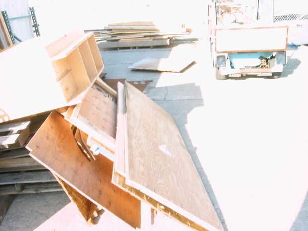 5 paneles de madera idénticos. Si los que encuentras son demasiado grandes o pequeños, cortar hacia abajo o uñas en otra sección. He encontrado unos 40" amplia trozos de madera resistida de diferentes longitudes de cajones de embalaje. No use madera tratada a presión. Para cualquier cosa.
