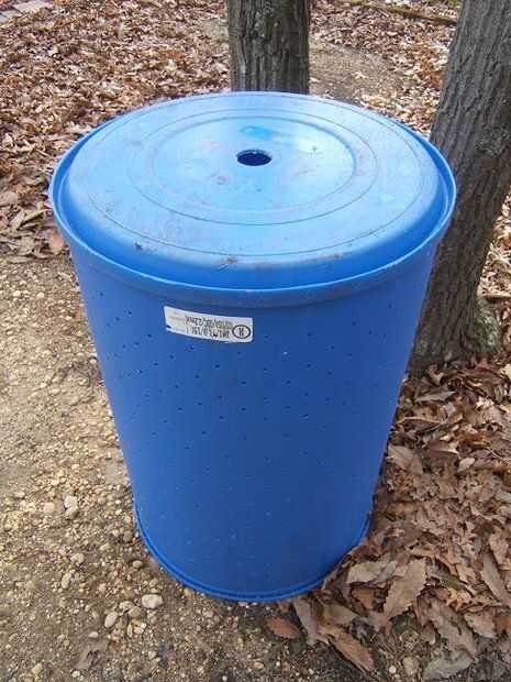 Decidí usar azul ya que se ponen calientes y calentará el compost dentro. Los barriles deben ser un color oscuro ya que colores claros que reflejan el sol y el calor es importante para el compostaje.