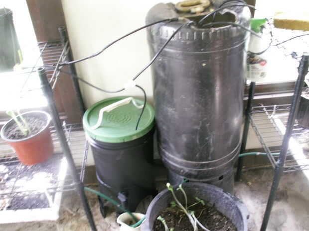 Que esta conectado a mi sistema de riego automático que hice para mis plantas. Así que cuando conseguirán regar mis plantas también lo hace mi compostador.