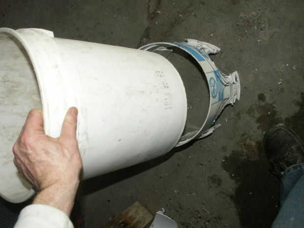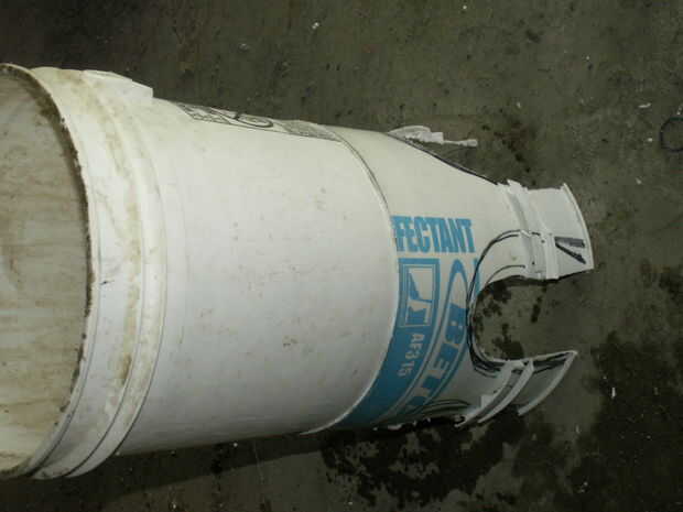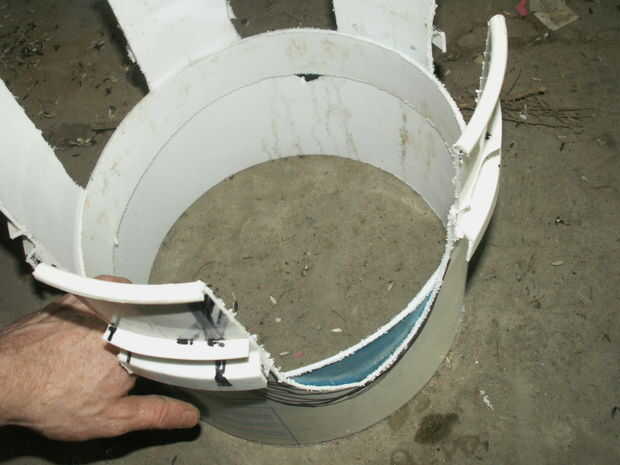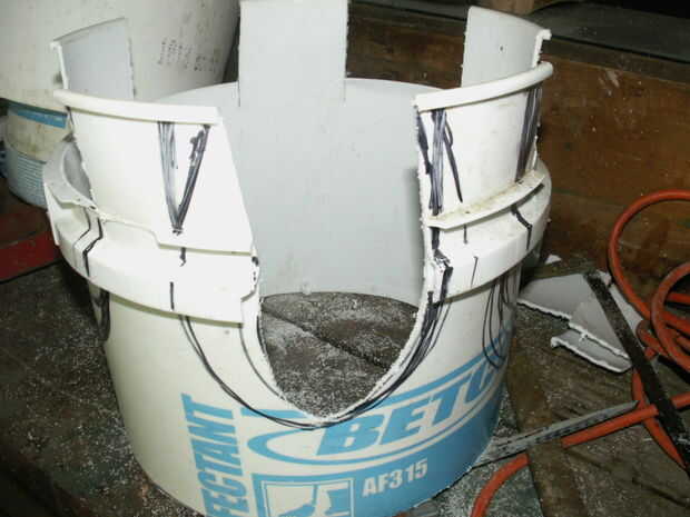 Tomar su segundo cubo sin cortar y la parte inferior debe caber cómodamente en la parte superior de las piernas. Esto debe todos los sobresalen junto con cualquier pegamento en todo!!