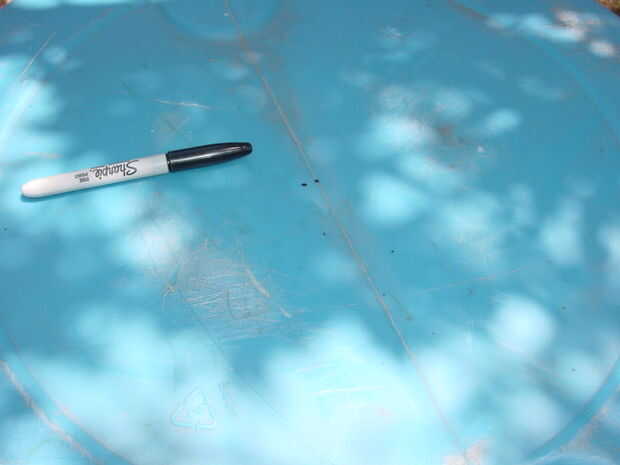 Marque el centro de la parte superior e inferior. Entonces usando un serrucho cortar un agujero lo suficientemente grande para su polo para ir a través.