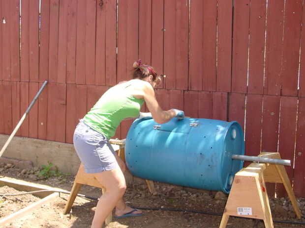 Colocar su material de compostaje en a través de la puerta. Trabe para arriba y darle una vuelta. Haz pesado así que mango colocado al azar ayudará a girar.