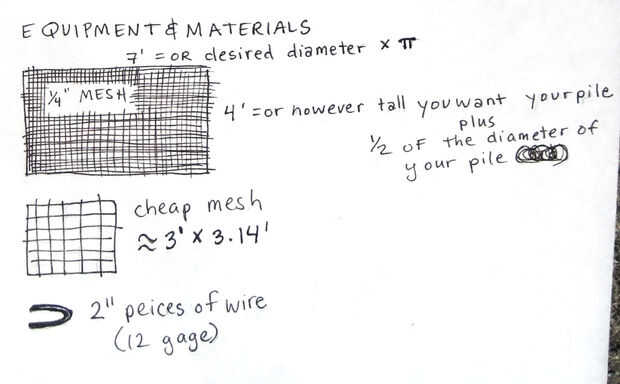 Tamaño de acoplamiento necesario para compostador más pequeño que solo 3' de diámetro con cesta interior de 1'. Ésta es la cámara de compostaje solo 2' de diámetro pero es aislado por todos lados por 1' de astillas de madera. Mis dibujos se refieren a dimensiones para este compostador más pequeño.