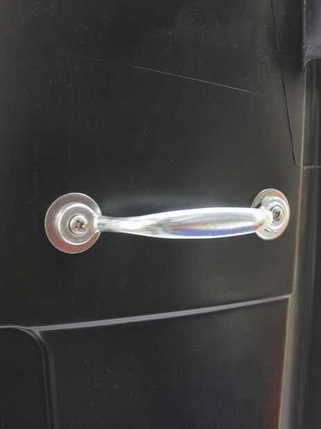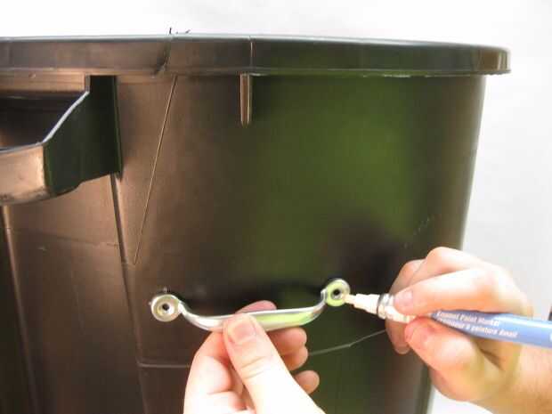 El compostaje puede atraer bichos y mascotas. Necesitamos una manera de asegurar la tapa. Los tirones de la puerta de cuatro pantalla serán puntos de enganche para las bandas de goma que sujetan la tapa en.