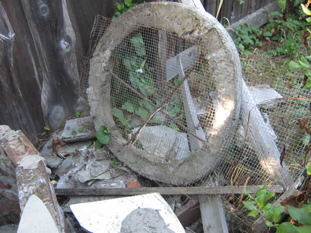 quería malla de alambre para protección de roedor esta vez. Usé algunos alambres de un tamiz viejo que uso para hacer finas del suelo. Era apenas lo suficientemente amplio como para el trabajo! Todo lo que tenía que hacer era cortar el exceso para que cupiera debajo del anillo de hormigón.