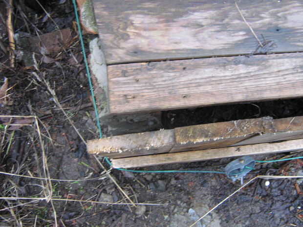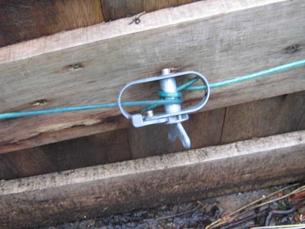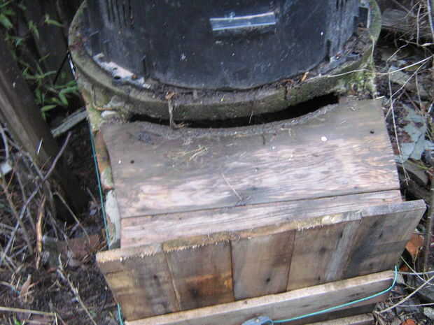 Terminé de fijar con un poco de la línea de ropa envuelto alrededor de la parte de atrás de los ladrillos. El tendedero tiene un tensor que se retuercen para conseguir muy apretado. Dejar salir la tensión un poco para quitar la puerta y llevar tu composta. (He hecho la puerta de una antigua plataforma) La tapa era una pieza de madera contrachapada. Por suerte se deslizó debajo del frente del anillo de hormigón un poco! No se adjunta a la puerta pero se mantiene en su lugar porque se deslizó en tan bien debajo del anillo. Si Afloje un poco la puerta, usted puede fácilmente sacar la tapa como se muestra en el cuadro 2 y cuadro 3