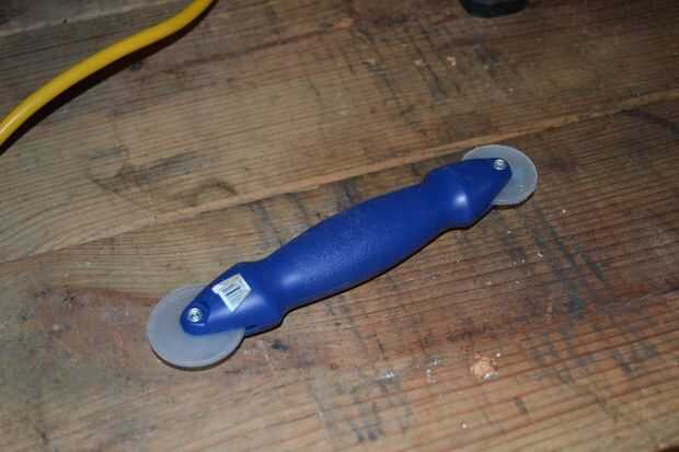 También se utiliza una guía de bolsillo de tornillo que compré en caja grande para este proyecto. Tienes que fijarlo con la abrazadera hacia abajo durante el uso, así que una abrazadera en c de algún tipo si no tienes uno. También utilicé una herramienta especial para la instalación de malla de fibra de vidrio en las pantallas de la ventana.