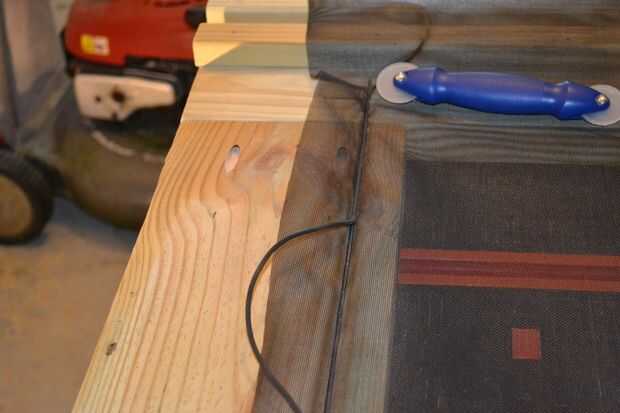 Para instalar la malla de fibra de vidrio, cortar ranuras en la estructura de madera con una sierra circular, entonces utiliza la tira pantalla herramienta y goma para sujetar la malla. Otra vez, te recomiendo ir con algo mas si vas a gastar el dinero.