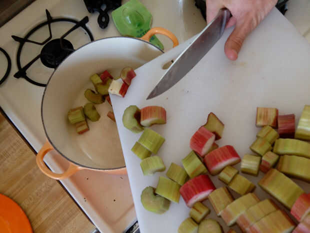 ¿La cantidad de agua que usted pide? Bueno me alegro verte participando activamente en este instructable. La respuesta es lentamente llena tu olla con agua y parada justo antes de que el ruibarbo empieza a flotar. Si tienes demasiada agua no preocuparse usted puede apenas fuego lento hacia abajo.