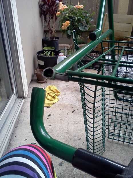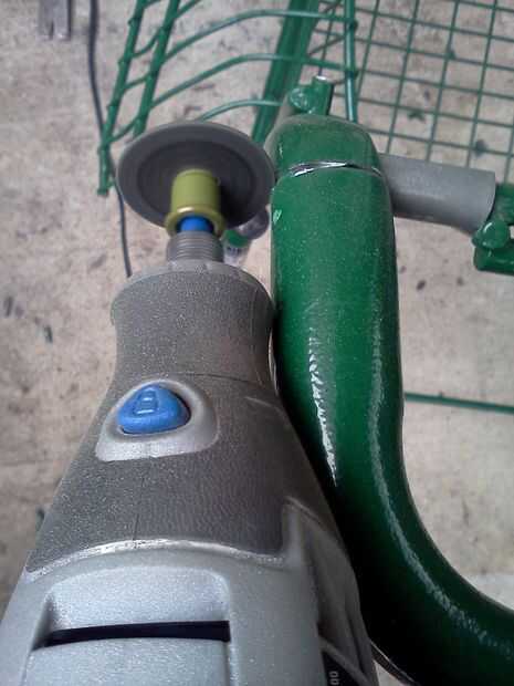Usando una dremel y cuchillas de corte, Sierra la barra para crear un aspecto más refinado. Este paso es totalmente opcional, deja la barra en para un look más obvio de "carrito de compras".