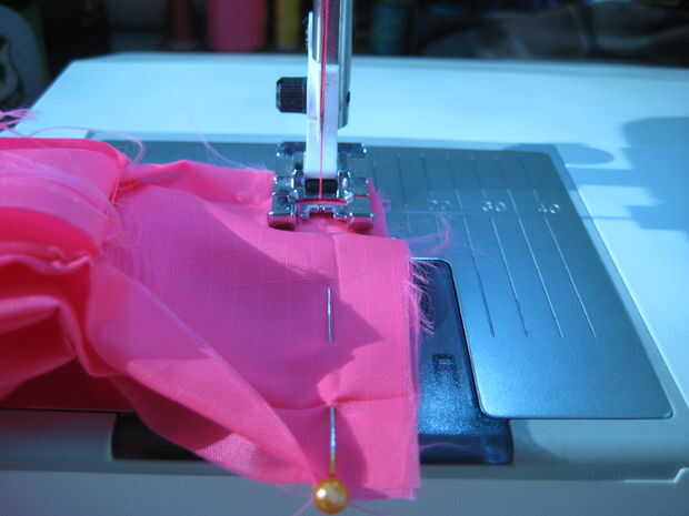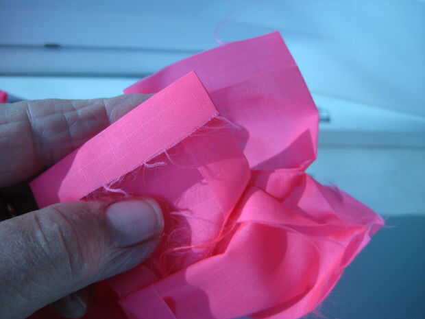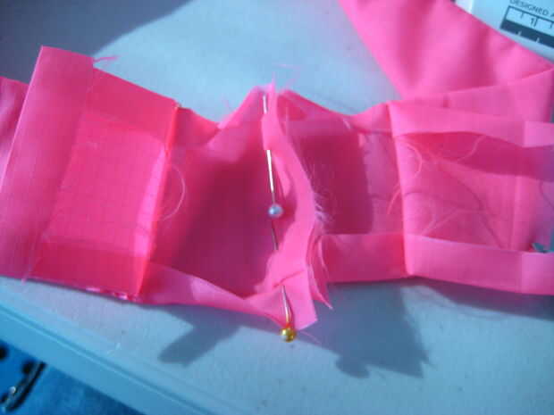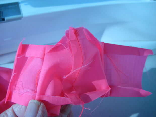 Derecho contra derecho de tapas de la manija del perno juntos y cosa 1,2 cm costura siguiendo las líneas de pliegue presionado