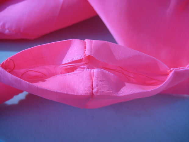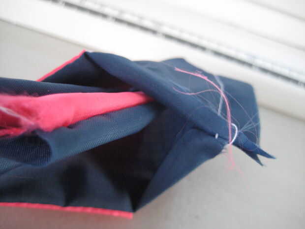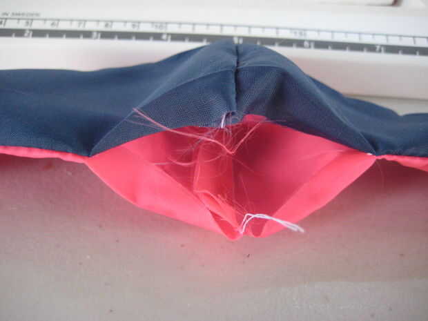 Tire de las manijas para que las costuras están en el interior – prensa bordes dentro y prensa.
