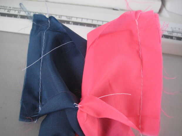 La rosa es el lado derecho y el azul es el lado equivocado.