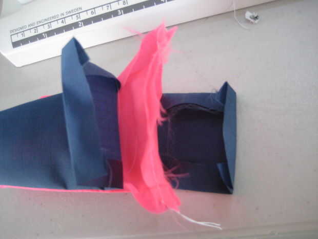 Trence tapas derecho contra derecho revés contra mango y cosa 1,2 cm costura siguiendo las líneas de pliegue presionado
