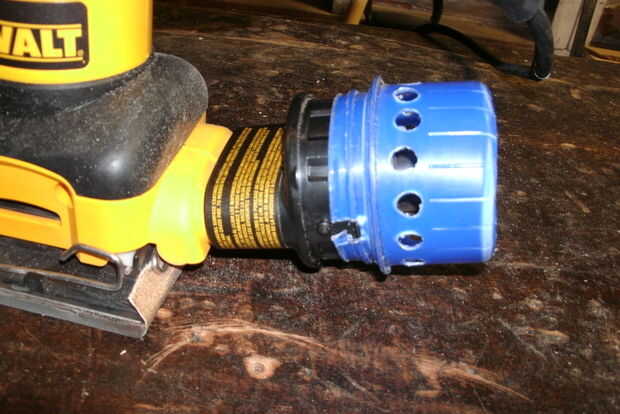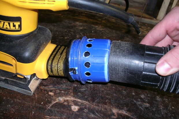 Una vez que el ajuste fue obediente decidí dejar el adaptador de la lijadora y conecte la manguera de la aspiradora de tienda como imagen 7. La prueba de ajuste trabajado perfectamente.