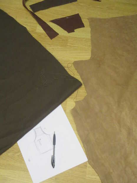 Luego dibujé un boceto rápido como una guía para le cortar la falda y el babero de su delantal.
