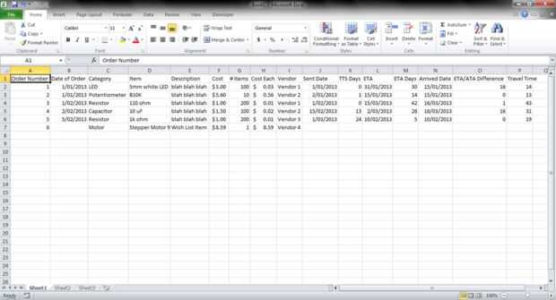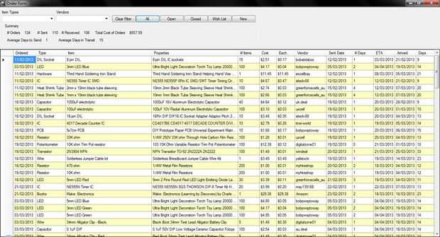 La aplicación utiliza la fecha de la orden, el tipo de componente, nombre del artículo, descripción, artículos # me voy a comprar, orden de costos, proveedores y un montón de otras cosas. Usted podría apenas como fácilmente hacerlo en una hoja de cálculo con jiggering un poco alrededor.