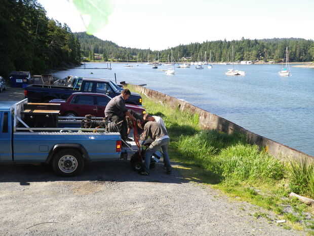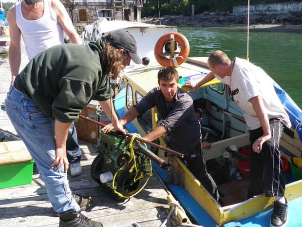 En una tarde soleada de primavera, finalmente levantó todos 400 libras de los Volvo Penta 'poco' en la estación y le cargué. Una vez más, el punto clave en esta lección es amigos y cerveza... (porciones de ambos).
