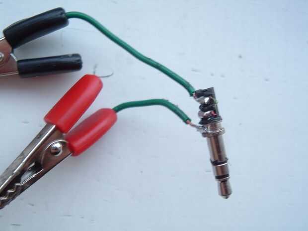 Tome el conector de auriculares de extremo derecho y corte la cubierta. Debe salir algo como el de la foto. Soldadura o pinzas de cocodrilo o los cables de la bobina real sobre el terreno y canal izquierdo, como se muestra en la imagen.