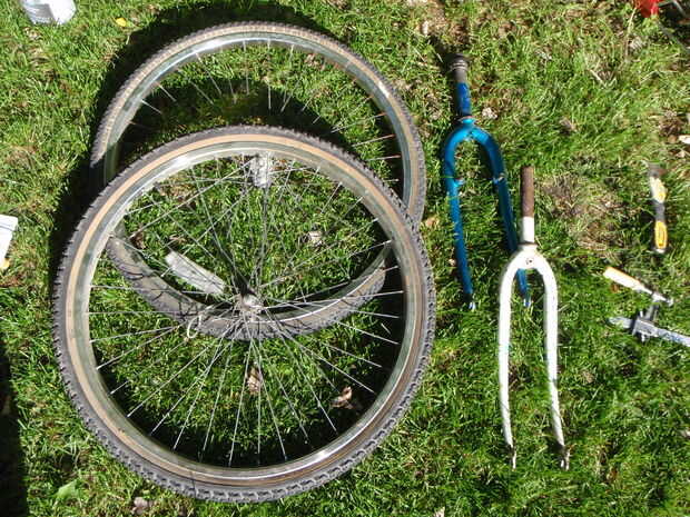 -viejo dos bifurcaciones de la bicicleta y las ruedas de ajuste