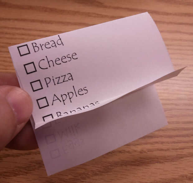 Digamos que hemos continuado nuestras compras y sólo hemos recogido de las manzanas y las Bananas.  Ahora podemos plegar la parte inferior de la lista y cubrir esos dos últimos puntos.  La lista se ha simplificado totalmente y sólo muestra los últimos tres artículos que necesitamos.