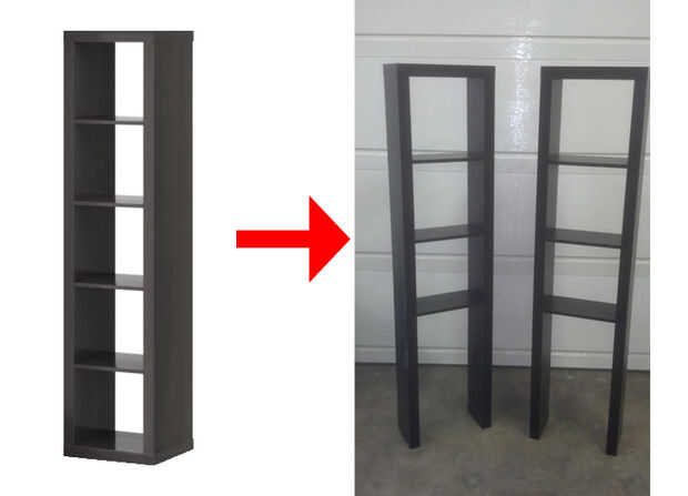 Cortar el medio y herida para arriba con dos 8" profundo estantes que caben perfecto.