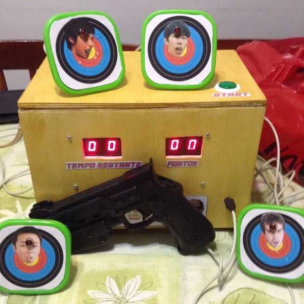 Este juego se hace con 4 objetivos, que cada uno contiene un indicador LED y un LDR pequeño. El objetivo es dar en el blanco seleccionado al azar con una pistola láser, entonces trate de golpear tantos puntos como sea posible.