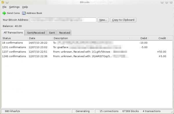 Luego basta con ejecutar el programa, pronto verá un aumento en el número de "bloques" de estos bloques son todas las transacciones existe en el mundo bitcoin. Antes de empezar a minería su cliente necesita descargar todos estos bloques.