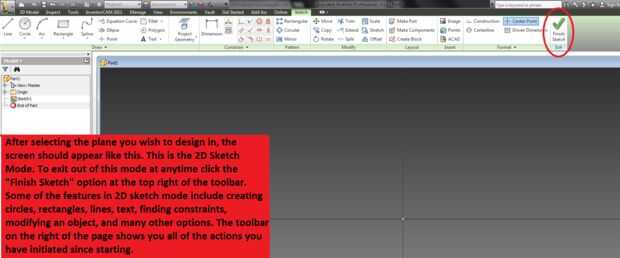 La barra de herramientas es bastante fácil de entender. Hay básicamente dos modos principales, el modo de boceto 2D y vista 3D. En el modo de boceto 2D le permite crear objetos 2D (es decir, círculos, cuadrados, triángulos, etc). Además puede medir dimensiones, crear restricciones, modificar el objeto (copia, rotación, desplazamiento), creación de texto y muchas características más básicas. Haga clic en las imágenes para una guía paso a paso y una vista y una explicación más detallada. Usted puede elegir qué plano desea utilizar también.