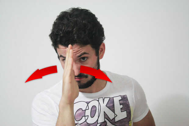 Ponga su mano abierta, excepto el pulgar, delante de su cara y es perpendicular a la nariz. Luego agitar con movimientos circulares rápidos y cortos.