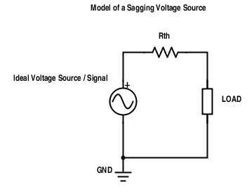 Mayoría de las señales y fuentes de voltaje son imperfectas. Por lo general, cuando tratamos de sacar corriente de una fuente de tensión, la tensión disminuye. Esta disminución de voltaje se llama sag. SAG puede causar problemas significativos en circuitos de varias etapas donde etapas posteriores dependen de recibir una tensión estable.