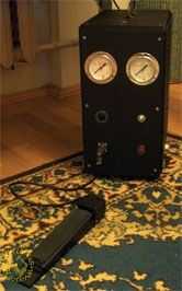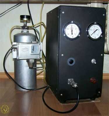Como un receptor he utilizado viejo extintor. Hay botón de "encender" colocado sobre zócalo SHR. Esto es necesario para comprobar el compresor en funcionamiento cuando no está conectado el control externo. En la primera especificación, había una opción para activar el nivel de aceite lámpara de la marca.
