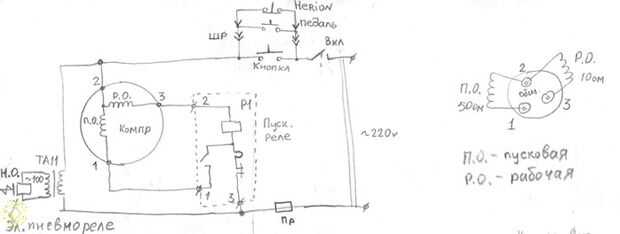 Пр – significa fusible que energía es proporcionada por el conmutador, pero no es necesario el uso de conmutador, de todas formas la potencia del compresor se encenderá por los botones superiores. Así, el más alto – es neumático eléctrico relé en el receptor. A continuación, puedes ver los pedales con botón. Lo uso para la creación de vacío.