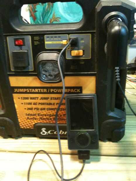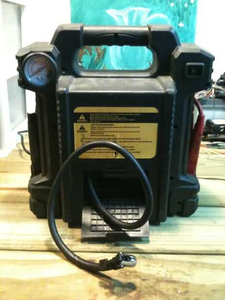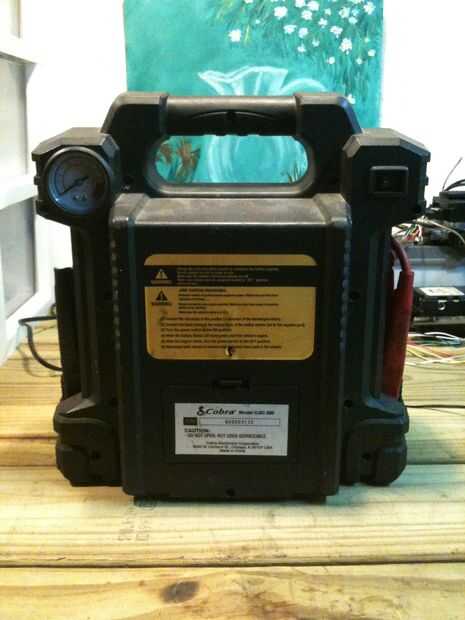 Cobra vende un saltar-stárter /-paquete de energía que tiene cables de puente, indicador de carga, usb, una luz, una toma de encendedor de cigarrillos, un inversor y un compresor de aire. Encontré mi central en el Cable en la cueva de ganga por 25 dólares. Fue descontado porque faltaba el cargador AC/DC.