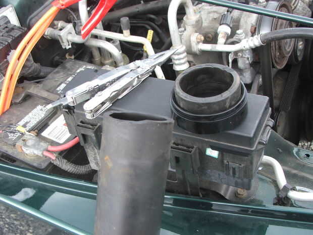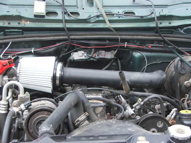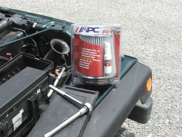 Para colocar el filtro de aire cono debemos cortar la sección acanalada flexible del tubo de aire de 4.0L. Con el cono de filtro de aire vendrá un conjunto de anillos adaptadores de goma el más pequeño de estos anillos deberá ser presionado sobre el extremo recto de la manguera de aire. Una vez en su lugar el filtro puede ser bloqueado en apretando la abrazadera para tubería adjunta. El extremo opuesto de la manguera de aire deberá ser presionada hacia abajo sobre el cuerpo del acelerador y apriete con abrazadera para tubería adjunta th.