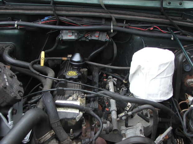 Para cubrir el filtro de cono debe colocarse una bolsa de filtro de aspiradora de taller sobre él para atrapar cualquier exceso barro o suciedad. Puede ser sostenido con una banda de goma más grande.