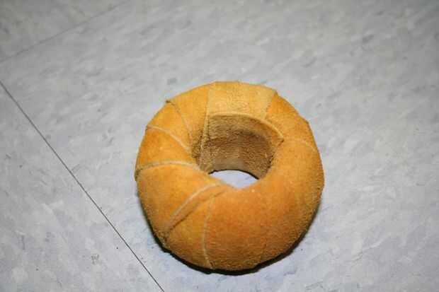 Tomé las tiras de cuero de alce tengo en la tienda local de la piel y envuelve el centro del cojinete. Apartó un trozo de madera en el torno para formar un núcleo de la clapeta. Un poco fue afilado para cuña firmemente en el centro del cuero envuelto cojinete y ensanchado en la parte inferior. Después de taladrar un agujero a través del núcleo, añadí un ojal en cada extremo.
