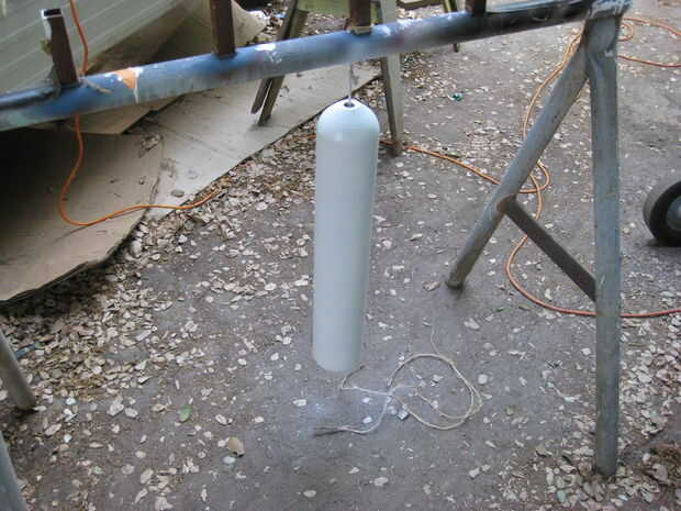 Luego cuelgue su depósito con un trozo de hilo y una tuerca. Tuve este práctico rack dandy a mina de colgar!