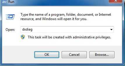 2. en ejecutar cuadro Escriba "dxdiag" y presiona ok (quitar la Colleen de dxdiag y tipo)