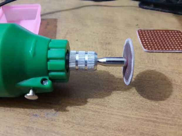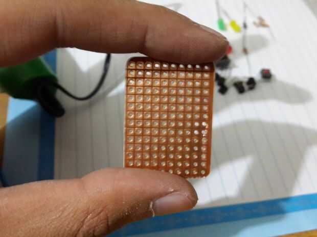 Tome un pedazo de veroboard y cortar según el tamaño de la caja de pendientes con la ayuda del mini taladro.