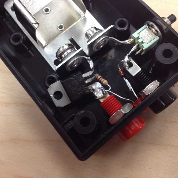 - Suelda el otro cable externo del regulador de voltaje a la red banana jack toma prueba plomo zapata como se muestra.