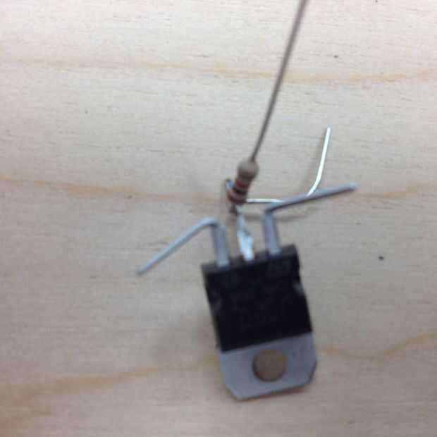 - La soldadura de la resistencia de 120 ohmios para el plomo del centro como se muestra en la siguiente imagen. Cada lado de los trabajos de resistencia, no importa.