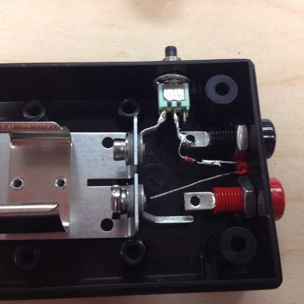 - Por último, soldar el lado del ánodo del LED, que es el único libre, a la zapata de plomo rojo banana jack toma prueba.