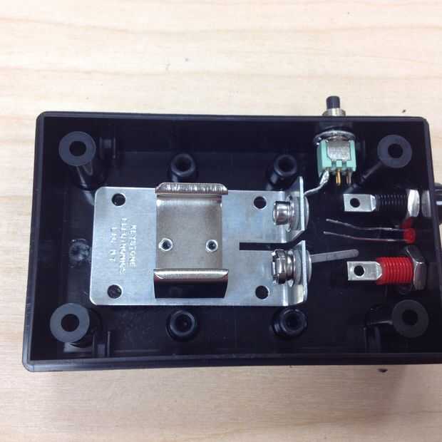 - Un corto cable desnudo a la zapata del interruptor de prueba centro de soldadura y a la banana negra prueba estirón de jack como se muestra arriba.