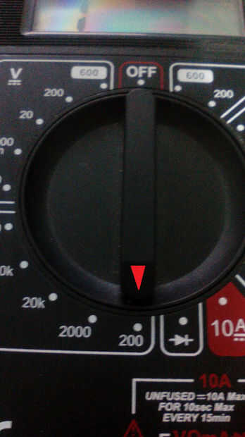 1) a su vez en el probador y seleccionar la medición de la resistencia (fijado en 200 Ω)