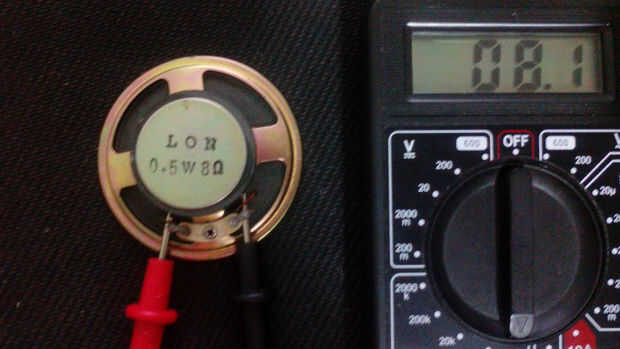2) tome los terminales del tester en los terminales de altavoz y espere el número de muestra.
