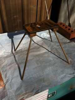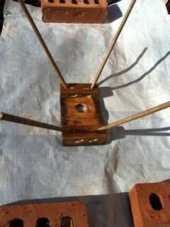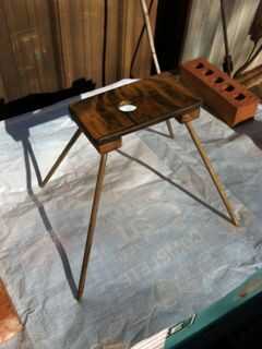 Éste está hecho de chatarra 5/8 madera contrachapada, 2 PC de!"x 2" pino y 4 piezas de 3/8" espiga.  Corté la madera a un tamaño conveniente y corte que un orificio de 1.25" con un agujero Sierra para ojo de cámara del iPhone.  Pegué 2 piezas de 1 x 2 a los extremos por lo que podía perforar los agujeros para las patas de la 4 clavija.  He perforado los agujeros de 3/8" en el 1 x 2 para las piernas y cortar 4 agujeros horizontalmente para almacenar las patas cuando no esté en uso.  Corté las piernas para establecer el nivel con las 4 patas en una superficie plana.  Había numerado las piernas y orificios cada correspondientes iría donde estaban destinados.  Después de hacer un poco de lija y untar una capa de tinte, se terminó.