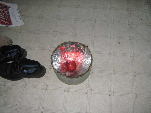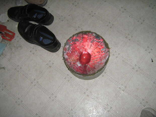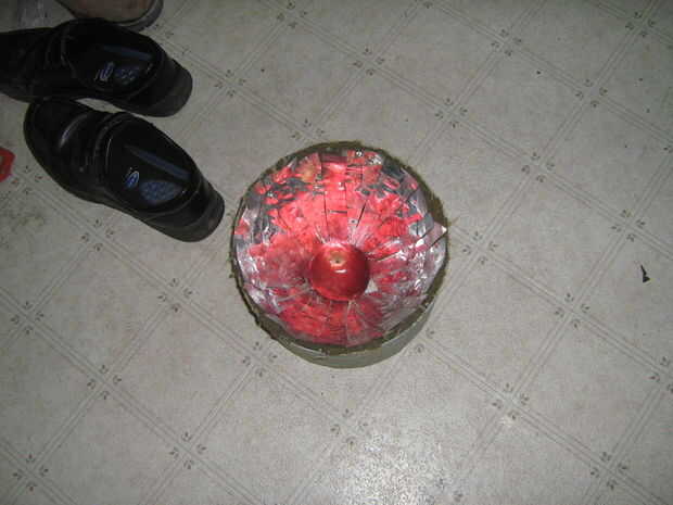 Como se puede ver, dependiendo del ángulo en que fue tomada la imagen, el reflejo de la manzana o bolita era muy diferente. (La manzana pasó a ser más cercano al tamaño de la distancia entre el foco y el fondo del plato). Creo que las fotos son un indicio de cuán eficaz puede ser el plato.