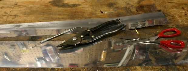 (Si decides utilizar tapajuntas, tenga en cuenta que la capa por un lado es probablemente más difícil de la arena por que la otra. Ejecutar un experimento y saber que, si no es evidente, no importa). - Cortar la hoja de aluminio a medida. Verificar celdas H12 y H18 para valores. Utilicé unas tijeras para el corte a la medida final para minimizar la cantidad de flexión.